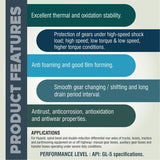RECOMMENDED for Hypoid, spiral bevel and double reduction differential rear axles of trucks, buses, tractors and earthmoving equipment on or off highway; manual gear boxes, auxiliary gear boxes and transfer boxes operating under severe duty conditions.
